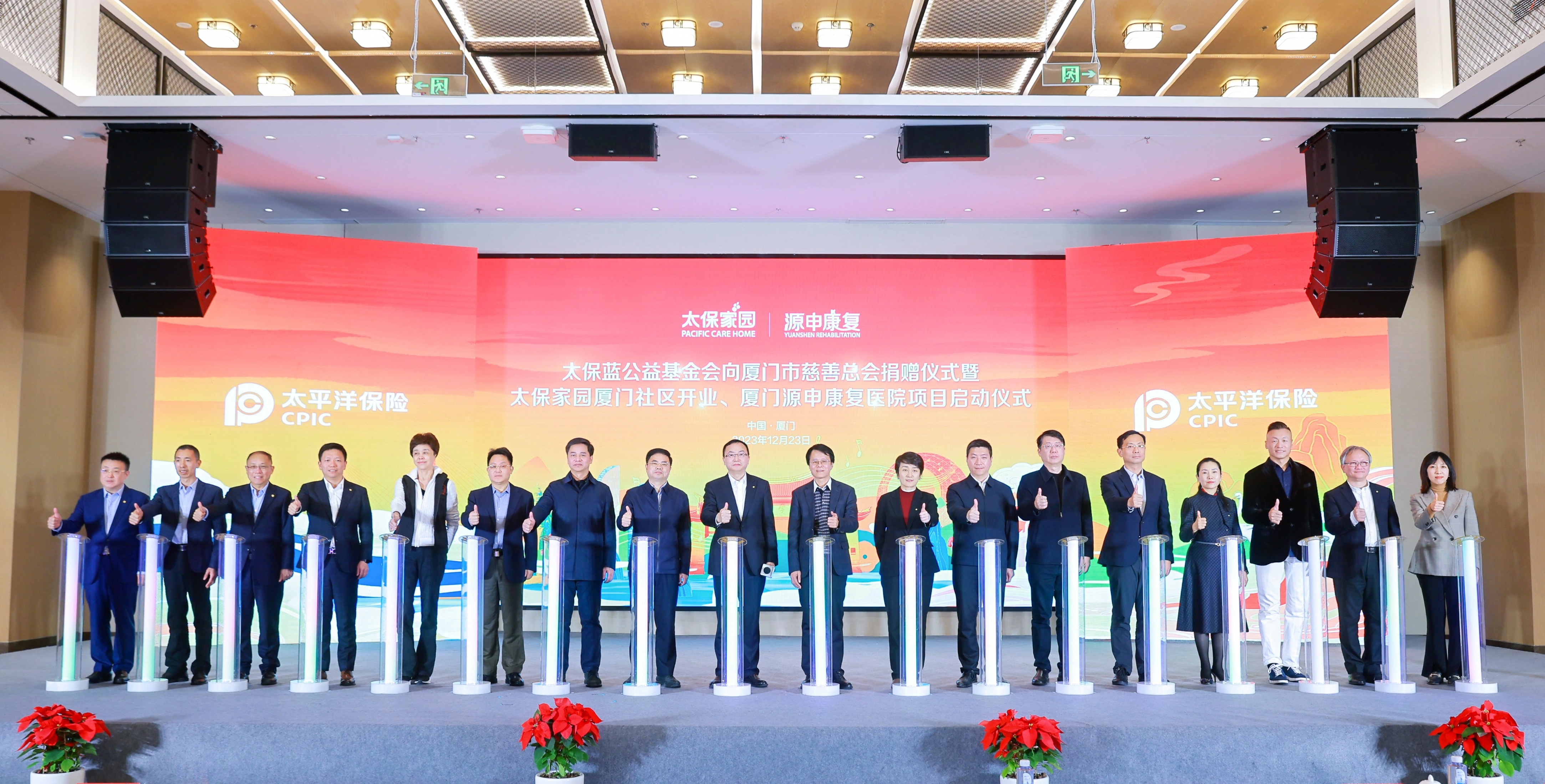 在開業(yè)慶典上,上海太保藍(lán)公益基金會向廈門市慈善總會專項捐贈50萬元,助力廈門市老年認(rèn)知癥專區(qū)建設(shè)。廈門市慈善總會授予了太保藍(lán)公益基金會“慈心無疆,善舉有愛”的榮譽(yù)錦旗。
