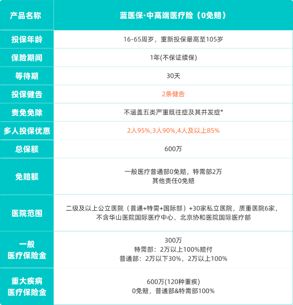 藍(lán)醫(yī)?!ぶ懈叨酸t(yī)療險(xiǎn)(0免賠版)用更低的門檻、更廣的覆蓋、更優(yōu)的看病體驗(yàn),為你提供更安心優(yōu)質(zhì)的健康保障。
